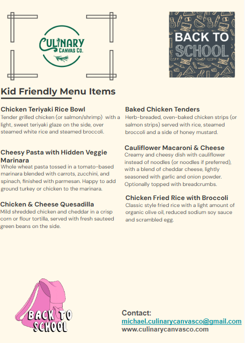 My seasonal kids menu has crowd pleasing, nutritious recipes available every delivery day along with my rotating menu selection.